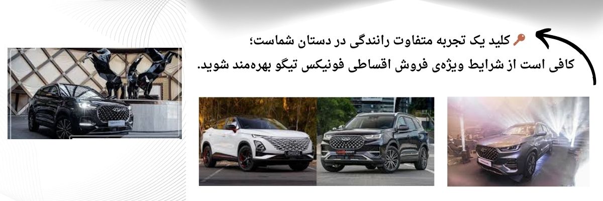 فروش اقساطی فونیکس تیگو در ایران و به ویژه در تهران، راهکاری کاربردی و هوشمندانه برای دسترسی آسان به خودروهای مدرن و ایمن است. خرید اقساطی فونیکس تیگو نه تنها فشار مالی را کاهش میدهد بلکه امکان بهرهمندی از خدمات پس از فروش گسترده، انتخاب طرح متنوع و مدیریت بهتر بودجه را برای خریداران فراهم میکند. انتخاب هوشمندانه طرح اقساطی باعث میشود مشتریان بتوانند تجربه خریدی راحت، اقتصادی و رضایتبخش داشته باشند و از سرمایه خود به شکل بهینه استفاده کنند.